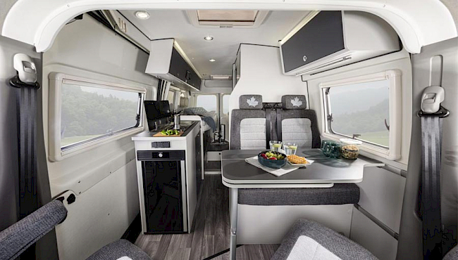 Bad weather outside? Cook, eat or work inside the camper by using the convertible table and benches. You can also use the table when the bed is build.